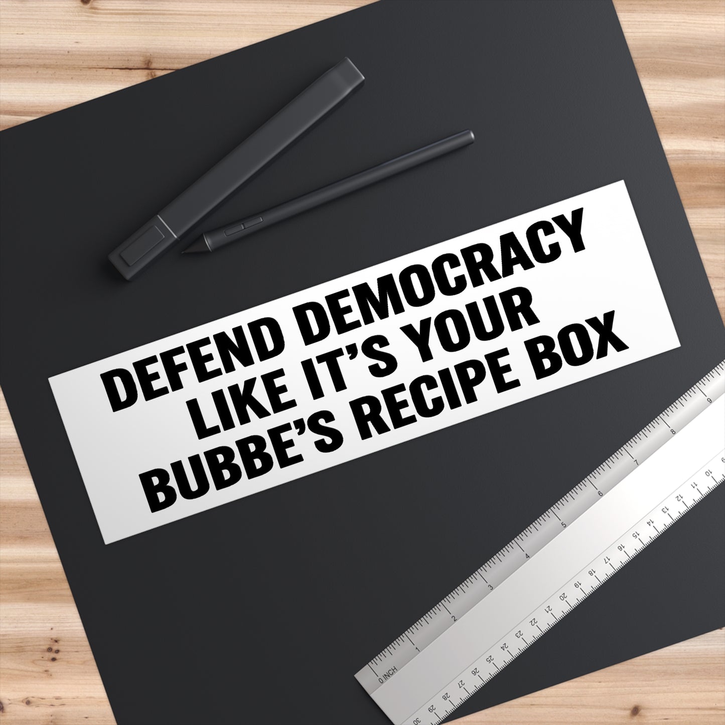 Because some things are too precious to lose—your Bubbe’s brisket secrets and, you know, democracy. This bold bumper sticker blends political passion with a dash of Yiddish warmth, reminding everyone that protecting our freedoms is a family tradition. Printed on durable, weatherproof vinyl so it survives protests, rallies, and all four seasons of kvetching. Add a touch of personality to your space or vehicle with these vibrant bumper stickers.