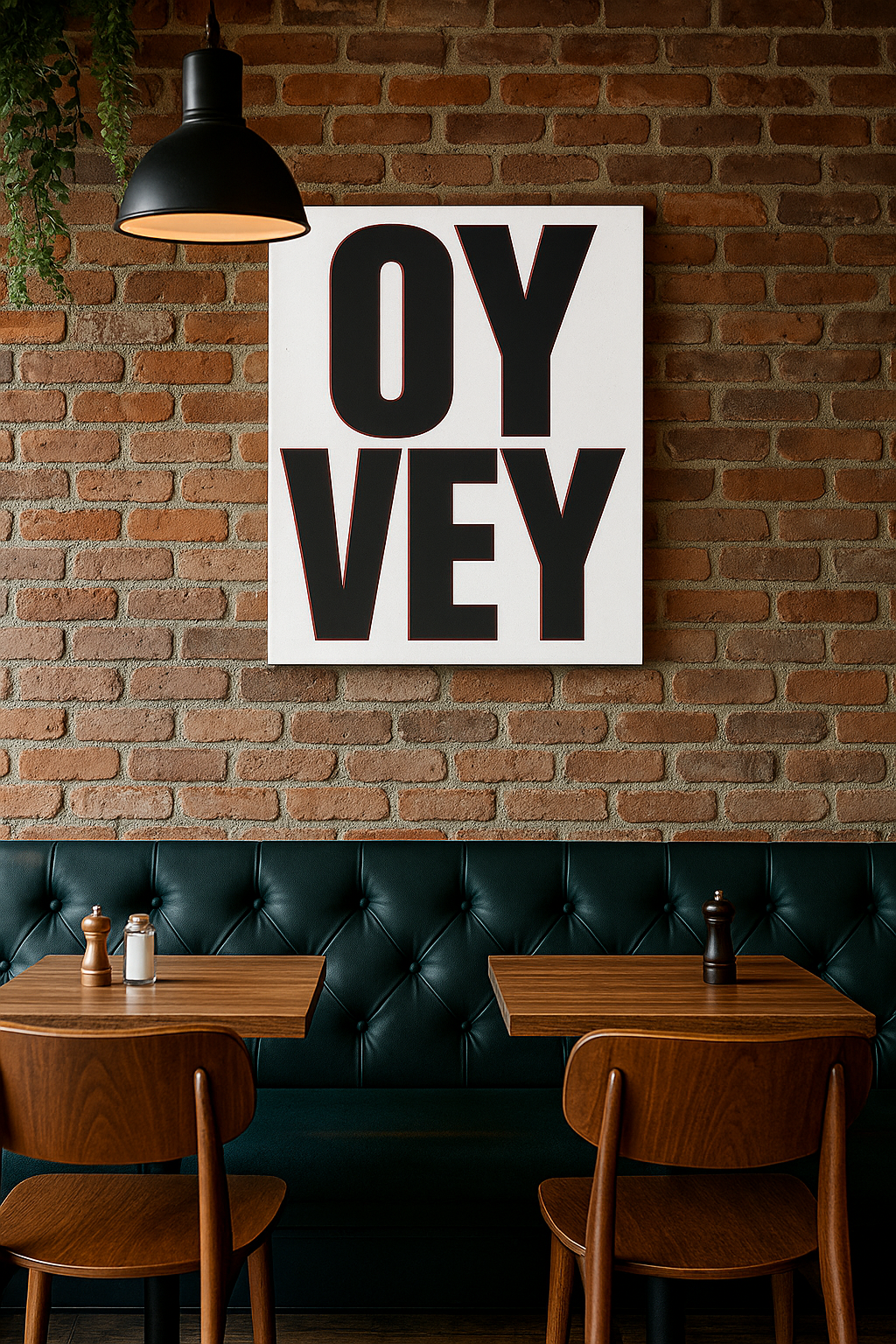 Big. Loud. Unapologetic. This stretched canvas says what we’re all thinking: Oy Vey. Bold block lettering with a sharp edge makes this piece as iconic as the phrase itself. It’s clean, modern, and packed with Jewish humor that works in any space. Available in 8"x10" (perfect accent piece) and 16"x20" (the statement wall art you can’t ignore). Printed on high-quality stretched canvas, durable and ready to hang. Perfect for kitchens, living rooms, dorms, or as the funniest gift for anyone who knows how to sigh in Yiddish.